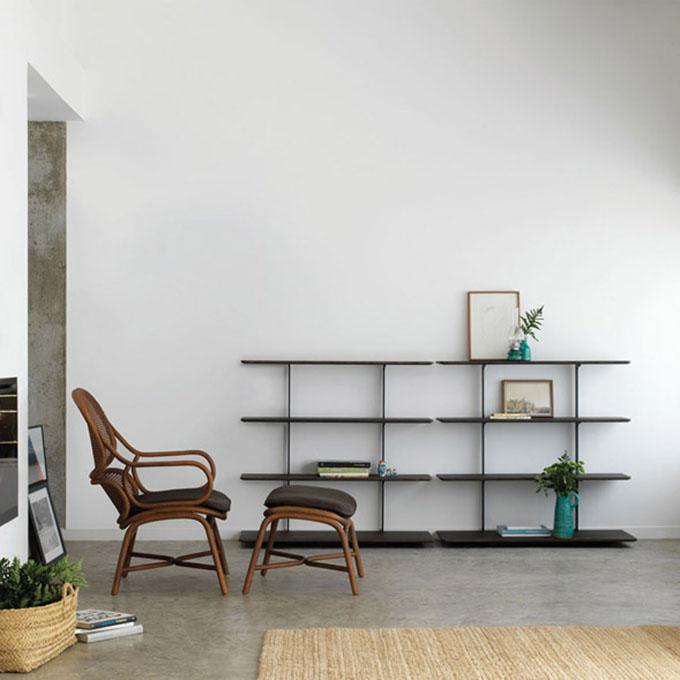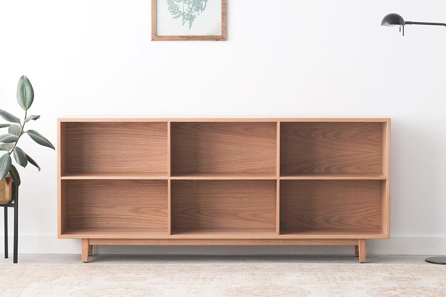 Fuente: Hedge House Con un diseño de lo más ligero, las estanterías horizontales son decorativas, prácticas y muy versátiles. Son similares (mucho) a los muebles de televisión, aunque no acogen pantallas sino libros.