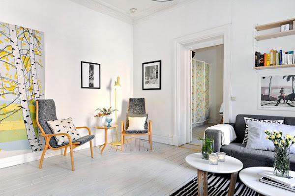 Los detalles en amarillo del gran cuadro del salón marcan la diferencia con la nota de color. Además refrescan el ambiente y lo hacen perfecto para el verano.