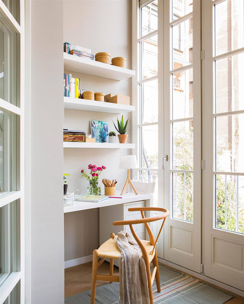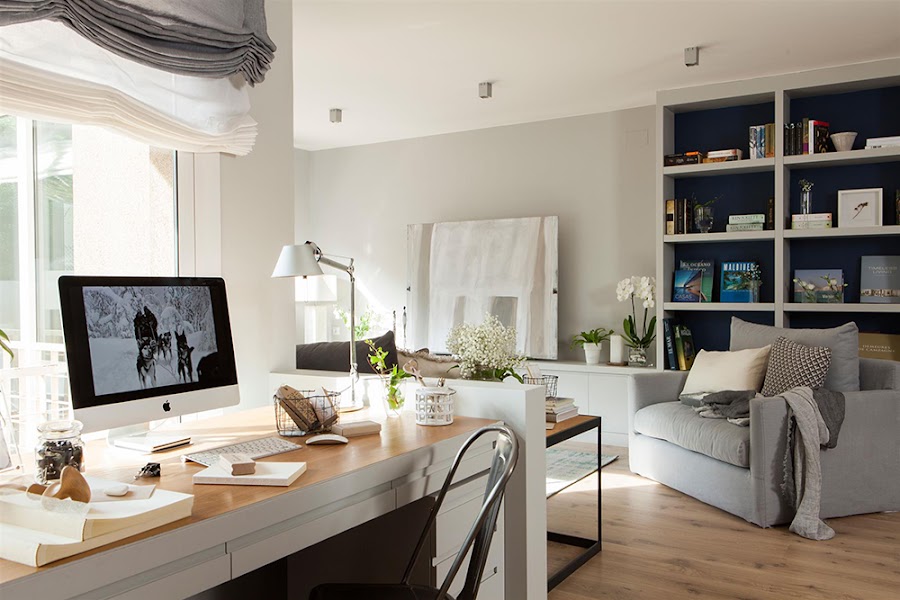 Pero, ¿cómo lo hacemos? Hay hogares que tienen la posibilidad de utilizar una estancia completa para habilitar un estudio o despacho en ella (¡Vaya suerte!) y otros que, al disponer de menos espacio, crean una zona de trabajo en algún rincón de la casa como el salón, la cocina o el dormitorio. ¿Es vuestro caso?