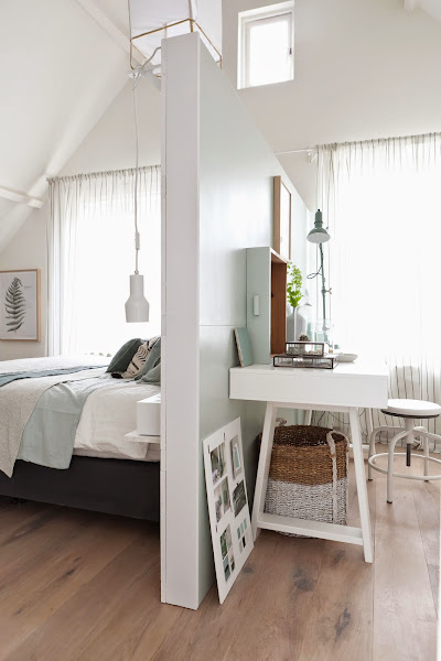 Es imprescindible que nos aseguremos de que el rincón que seleccionemos para teletrabajar tenga una buena cobertura del wifi. También es fundamental tener enchufes cerca, no sólo para nuestro ordenador, sino también para el móvil... No todos los espacios lo cumplirán.Vía Robb Restyle