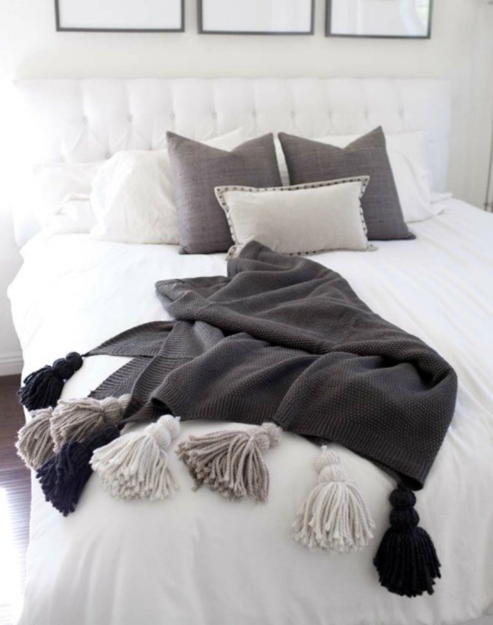 No hay una manera más sencilla de adornar y dar calidez a un cojín como colocar pompones o borlas de lana. Os dejo dos imágenes encontradas en el blog Casa original