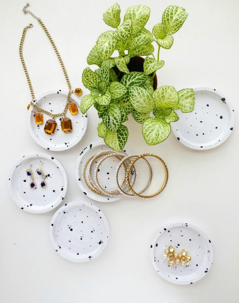 En realidad estos pequeños cuencos para depositar pendientes, anillos o pulseras son unos posavasos de corcho de IKEA. Con un pintura en spray blanca, pintura negra y un pincel fino se han transformado en estos precioso platos, ideales para la mesilla de tu dormitorio...¿No crees? El tutorial completo lo tienes en el blog diys.com