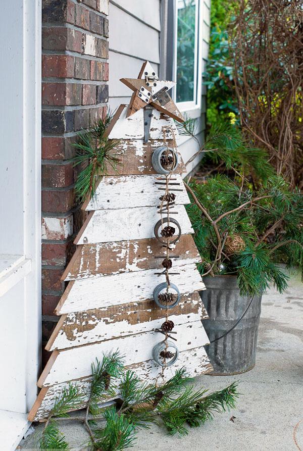 Como construir este árbol de Navidad con tablas de madera viejas despintadas y unos alambres. ¿Te animas?