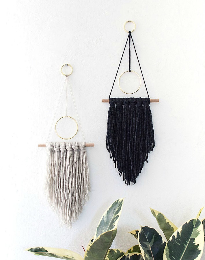 Esta idea handmade es ideal para los amantes del estilo nórdico en tonos neutros para cualquier estación del año. Cuando quiero encontrar diy con el contraste del blanco y negro recurro al blog Homey oh my ¿No me digáis que estos dos pequeños tapices no son elegantes?