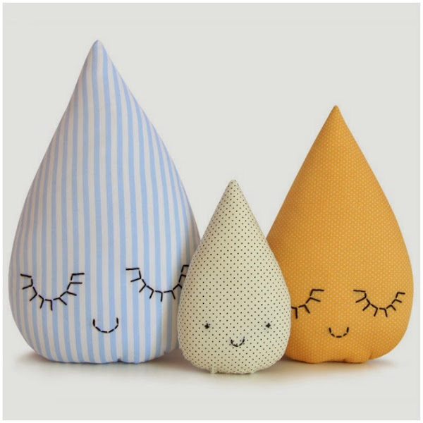 Ya estamos habituados a ver cojines en forma de nube, pero...¿ Que os parecen estos cojines con forma de gota? Una autentica dulzura para decorar la cuna o cama del bebe....el tutorial con el proceso completo lo puedes encontrar en desde my hogar.