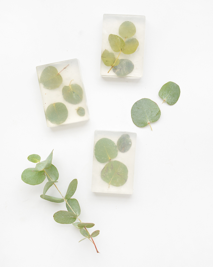 Aquí comparto una segunda idea para regalar en Navidad utilizando hojas de eucalipto, unos jabones. En el blog Burkatron tenéis el tutorial completo para crear este bonito regalo.