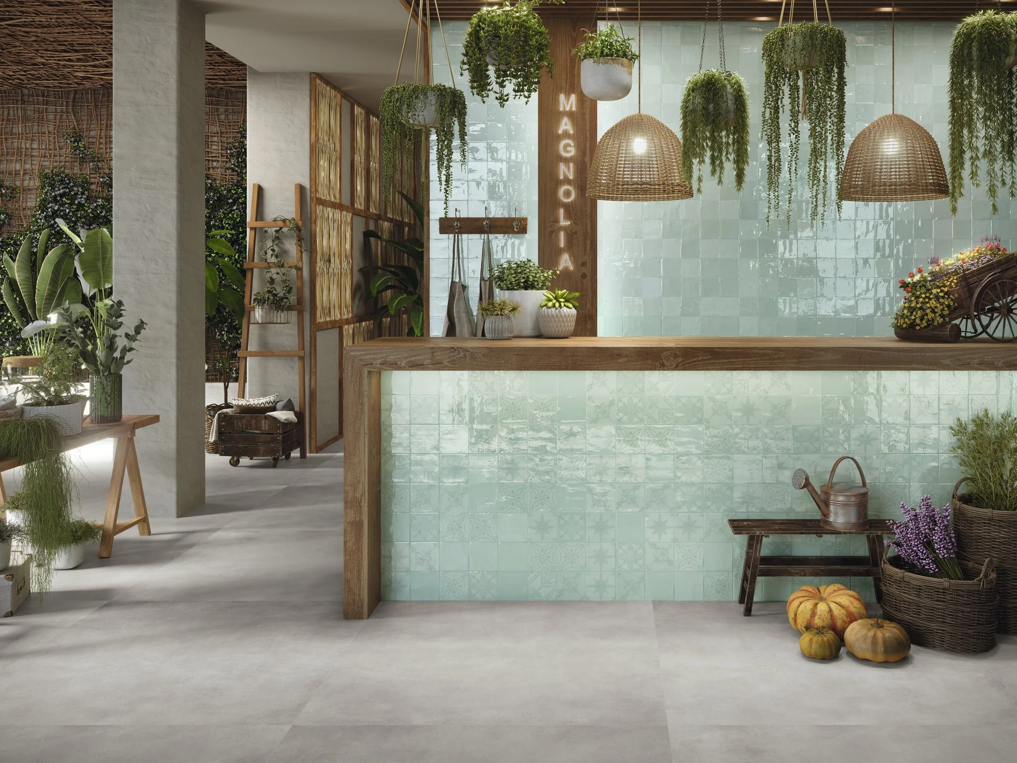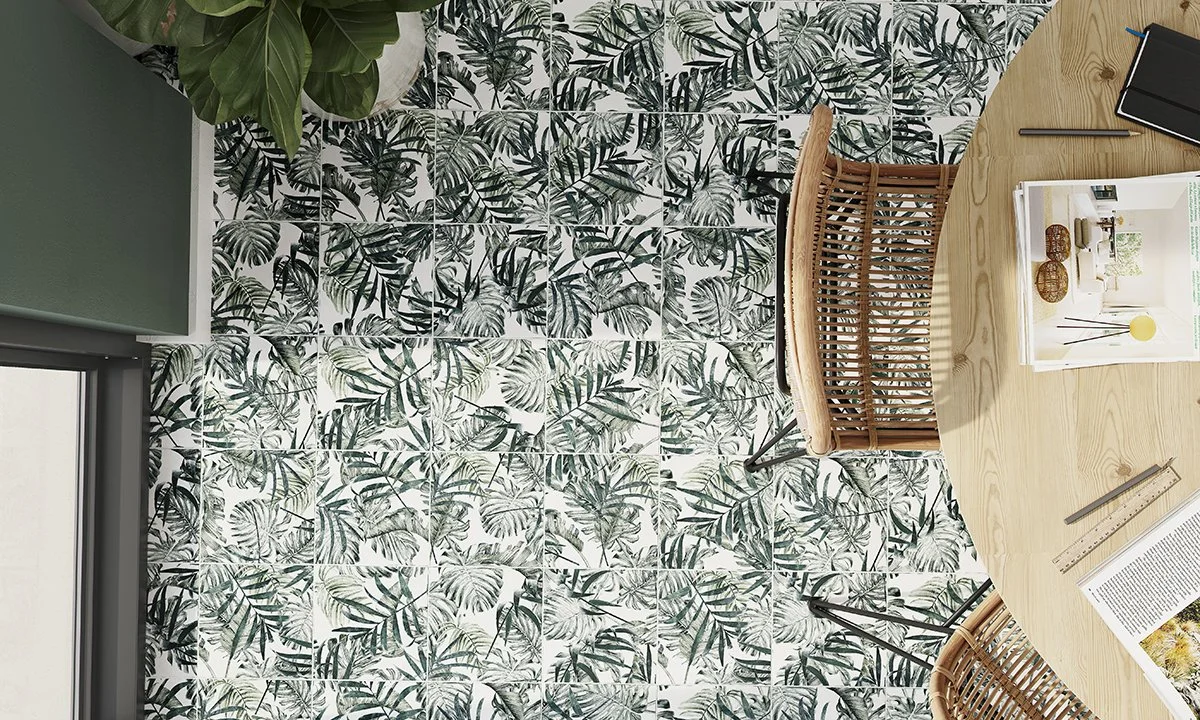 Si eres amante de las flores y de la naturaleza, esta tendencia te va a encantar. Es posible conseguir espacios ambientados en la naturaleza, con baldosas de pequeño formato que encajan perfectamente unas con otras creand grandes murales llenos de flores y plantas. ¿Que te parecen?