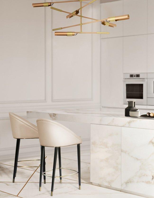 El mármol a menudo se combina con accesorios en dorado y elementos de estilo art deco en las luminarias, por ejemplo.