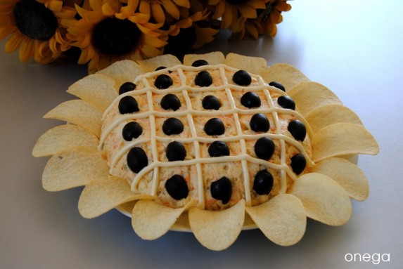 Un bonito girasol con pétalos de patatas pringles