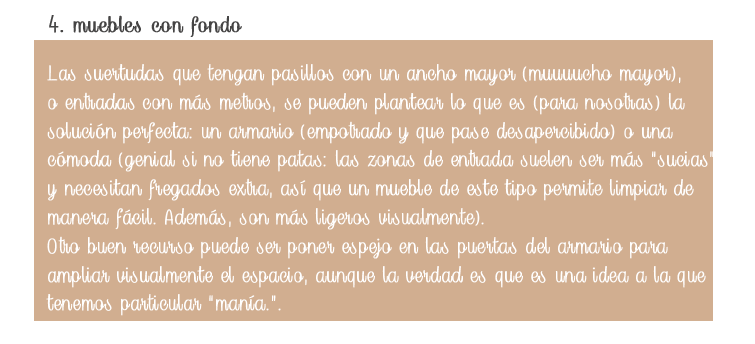 La cosa en sencilla (aunque, como ya os contábamos en un post del antes&después de uno de los pasillos de casa, a veces no hay manera de encontrar el mueble de las medidas que necesitamos): auxiliares de poco fondo, en tonos madera o blancos, con aspecto "ligero" y que permitan guardar sin tener que hacer demasiado esfuerzo (y si hay niños, todavía más. El actor principal de la #decopedia deja sus zapatos en un baúl en la entrada que es "meter y listo"!). Que os ayude e inspiren esta colección de tips para decorar nuestros pasillos!
