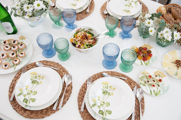 2.-Vajilla. Como ya te he dicho anteriormente vuelven los estampados a nuestra mesa por medio de la vajilla. Dibujos de naturaleza con hojas y delicadas flores en tonos verdes y amarillos. También puedes optar por inspiraciones en cachemire en gamas neutras.