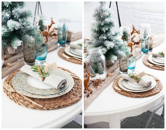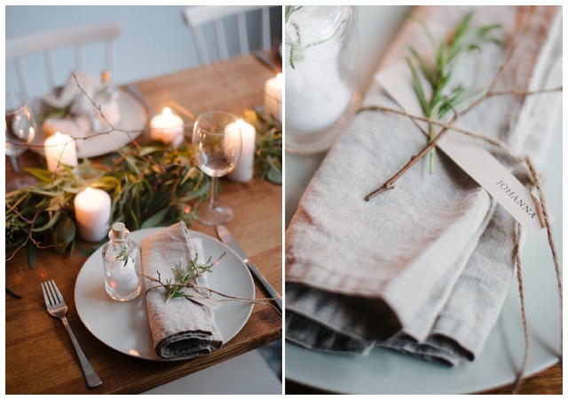 A best day ever también recurre a las ramas de eucalipto para decorar la mesa de Navidad. Un camino creado con ellas y unas velas son una idea muy económica y bonita para decorar la mesa en este ocasión tan especial. Cada plato con un frasco de cristal y la servilleta con una ramita con el nombre del comensal es otro precioso detalle.