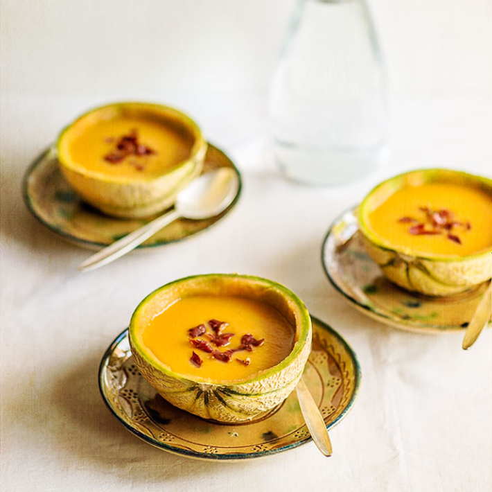 Seguimos proponiendo gazpachos con frutas frescas de verano. El melón tienen muchísima agua por lo que van fenomenal en sopas frías y gazpachos. En el blog el invitado de invierno han elaborado una con melones cataloupe, aunque también los podéis hacer con otro tipo de melón.