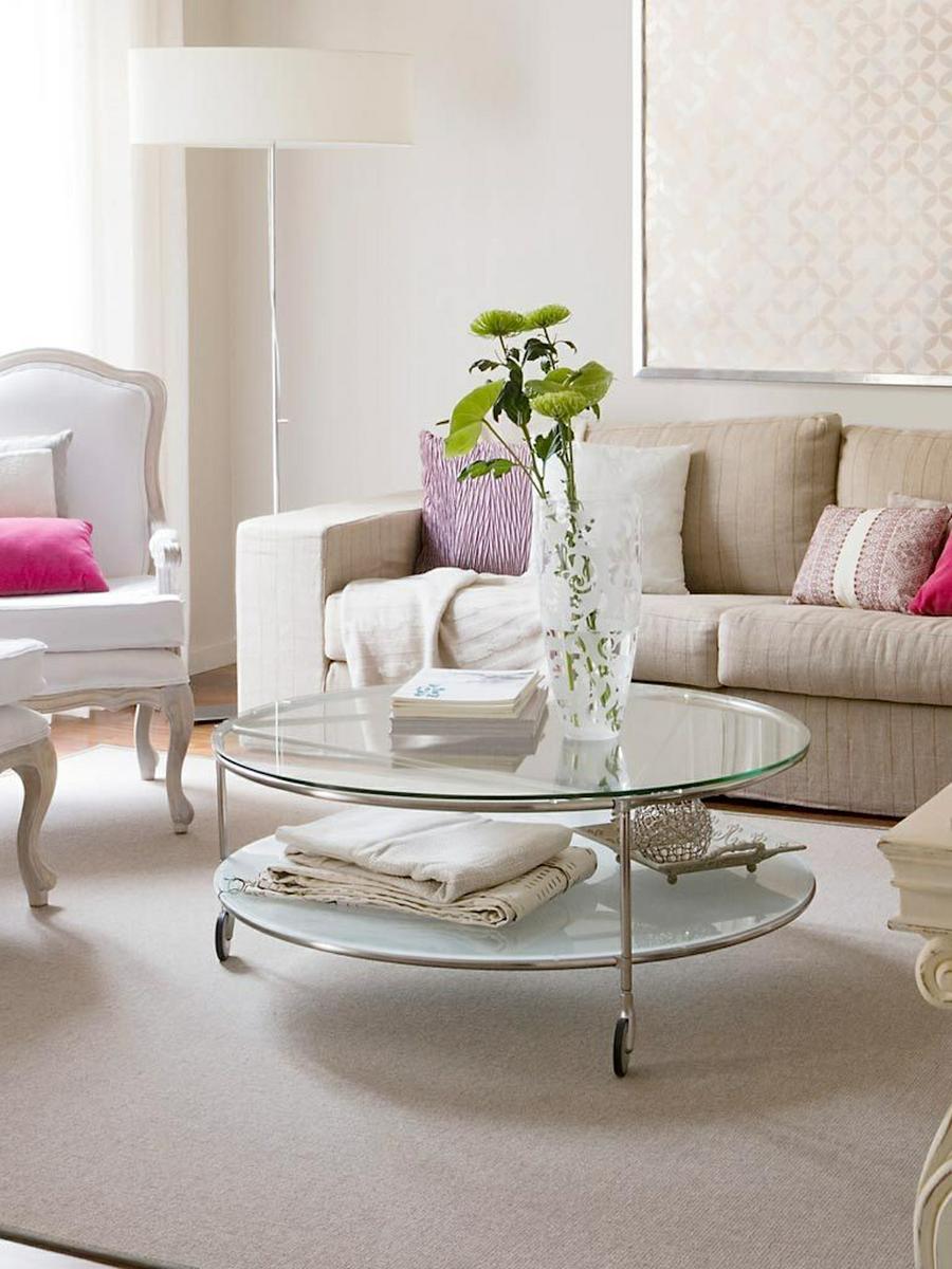 Los muebles con líneas redondeadas conseguirán que el espacio parezca mas grande. Al prescindir de la esquinas se ganan centímetros en las zonas de paso. Las mesas de comedor redondas funcionan muy bien en espacios cuadrados y en aquellos donde no hay una zona designada para el comedor. Además la forma favorece la creación de un más ambiente más íntimo. Es aconsejable no pegarlas a las paredes y colocarlas en el medio del espacio.Fuente: pinterest