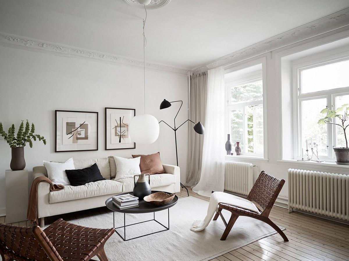 La clave para crear sensación de amplitud en los pisos pequeños es potenciar la iluminación. Apuesta por el estilo nórdico que se caracteriza por la utilización de colores neutros y claros y por los muebles de madera tono natural. Un sofá en rosa pálido será una apuesta segura, además de ser una tendencia decorativa muy actual.Fuente: pinterest