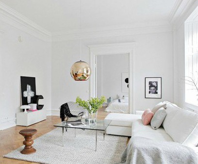 Este consejo no está puesto en primer lugar por casualidad. La sensación de espacio varía considerablemente según el color en el que estén pintadas nuestras paredes y techos. Los colores claros serán nuestros grandes aliados para conseguir que la sensación de amplitud de nuestras casas mejore. La mejor opción son los tonos blancos (blanco, blanco hueso, blanco arena, blanco hueso...) porque son los que mejor reflejan la luz haciendo que las estancias parezcan mas amplias. Y olvídate de la falsa creencia de que el blanco es un color frío y que tú casa dejará de ser acogedora. Con unas cuantas pinceladas de color, los textiles y algunas piezas de madera conseguirás que siga siendo acogedora sin renunciar a ampliar la sensación de espacio.