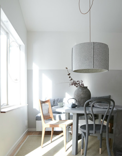 Hace tiempo que tenía fichada esta idea para forrar una sencilla pantalla de fieltro gris. El resultado es espectacular, aunque eso sí, perdemos algo de luz. El paso a paso es de Skona hem