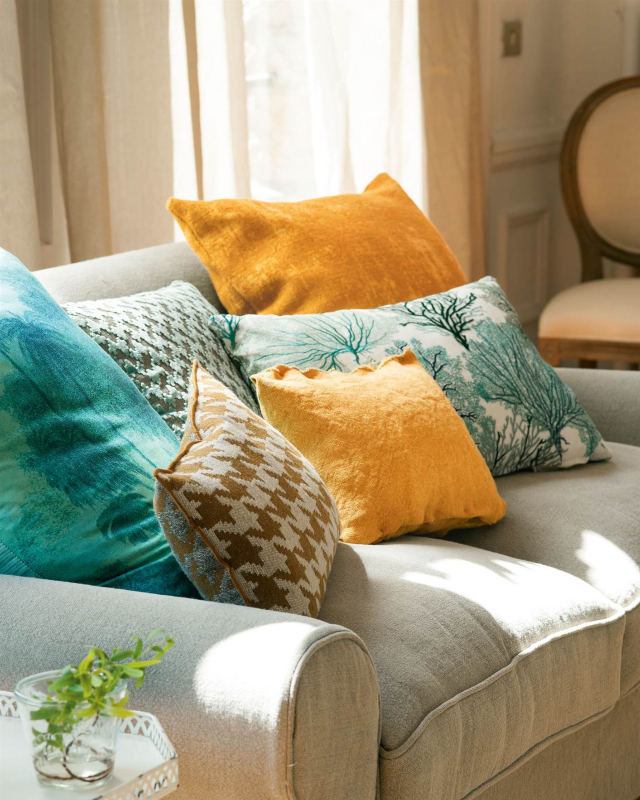 Los tapizados y textiles que cubren las camas o adornan los sofás son de tejidos nobles con estampados elegantes. Las telas de terciopelo, cuero, sedas o tweed aportarán un plus de decoración y color. Eso sí, en colores que aporten serenidad y armonía.