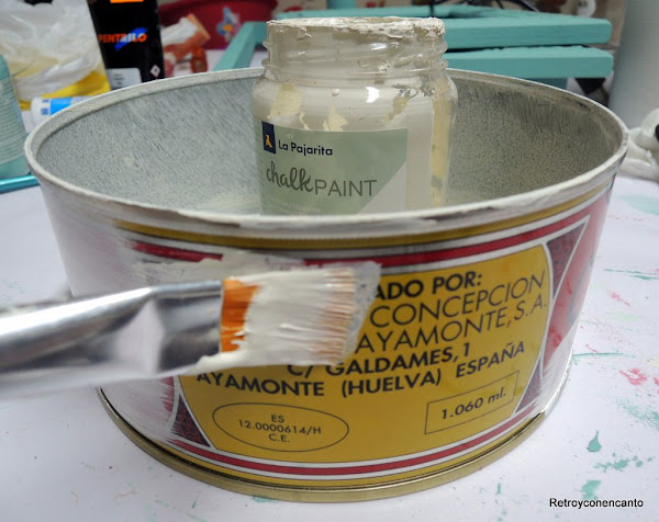 Pintura a la tiza en blanco roto por el exterior (tres manos, porque el material así lo exigía)...