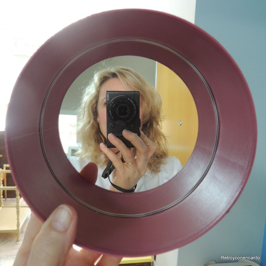 Encargamos en nuestra cristalería favorita, que siempre nos saca de apuros, un espejo cortado a la medida de la circunferencia interior. Y adherimos al fondo de nuestra lata con silicona.