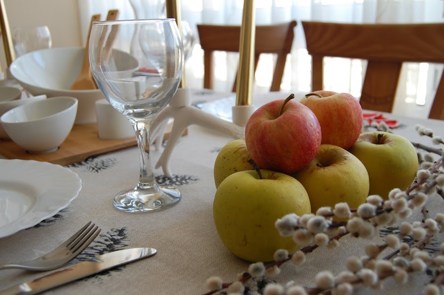 Otro de los detalles que he elegido para decorar esta Navidad, aunque también se puede comer, ha sido colocar unas manzanas que den color a todo el conjunto. El verde junto con el rojo siempre me han parecido los colores típicos de la Navidad, así que no podía faltar en este particular bodegón. Manzanas verdes y rojas colocadas en forma de pirámide.