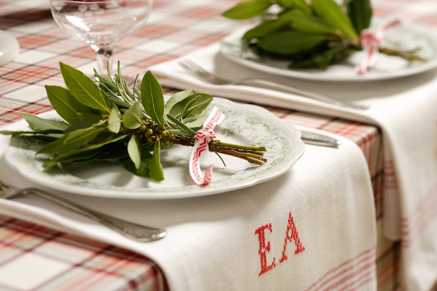 vajilla a la italiana, y armá ramitos de Laurel con cintas al tono.