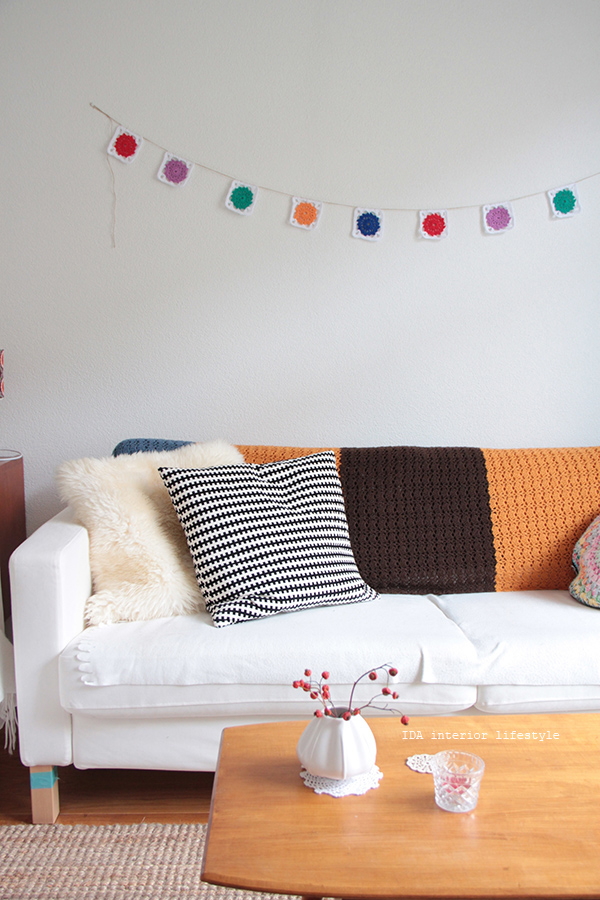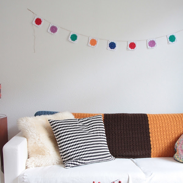 Súper idea low cost ... PONER UNA GUIRNALDA DE CUADRADITOS DE CROCHET y mirar como llena el espacio... I D E A L !!!
