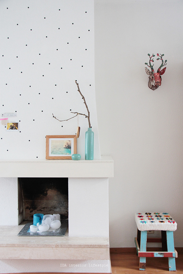 La chimenea esta llena de estrellitas negras, las ha hecho ella misma con la ayuda de una troqueladora