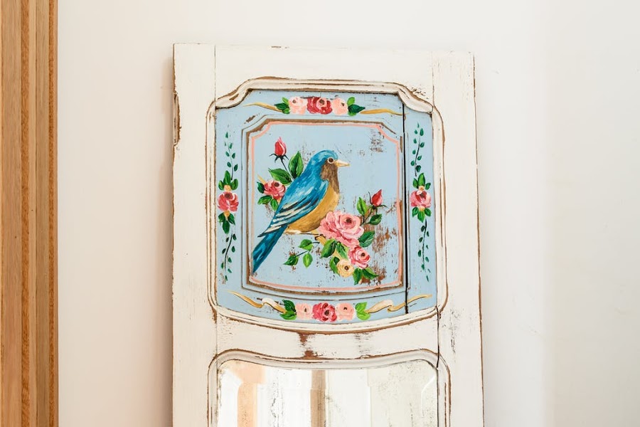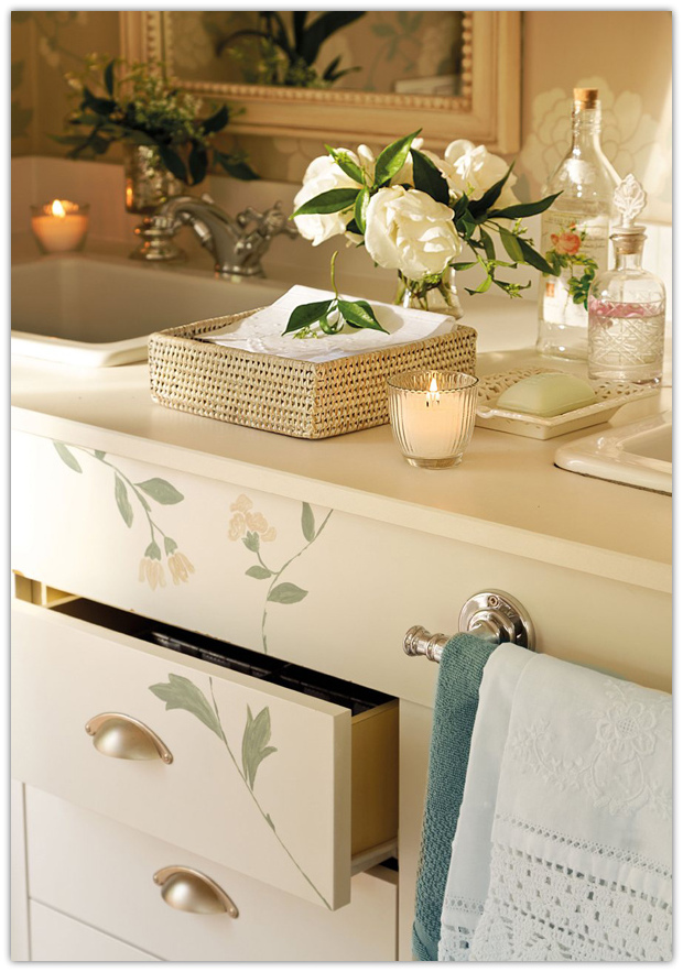 Cuando Mª Angeles, una amiga muy querida de una de nosotras, nos envió la foto de esta mesilla redecorada por ella misma, nos quedamos impresionadas por cómo había reproducido, a mano alzada, el motivo del bonito empapelado de la pared de su dormitorio. Menudo arte, ¿no creéis? Muchas compañeras blogueras tiene ese don, el de dibujar, y no pocas veces nos han deleitado con sus creaciones plasmadas en muebles, papel, tejidos... Aunque son los primeros los que más nos llaman la atención, pues a ellos nos dedicamos principalmente. Sí ya tiene trabajo transformar cualquier mobiliario con el color, ni nos imaginamos el esfuerzo de personalizarlo a pincel con un motivo decorativo. Pero queda patente la personalidad y el carácter único e irrepetible que esas pinceladas proporcionan al enser, auténticas obras de arte de uso doméstico.