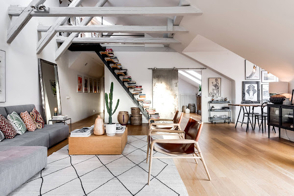 Ya volvemos a la normalidad, a quitar toda la deco de navidad (que pena...)la dejaríamos todo el año, es tan bonita!! Y como ya es tradición una vez al mes, os enseñamos una casa. La de hoy es un loft industrial en Estocolmo de 150 metros cuadrados con mucha luz y toques cálidos que le aporta la madera, los tejidos y la piel. De esas casas que nos encantan y esperamos que os guste tanto como a nosotras. Nos vemos el jueves, ¡Feliz semana!