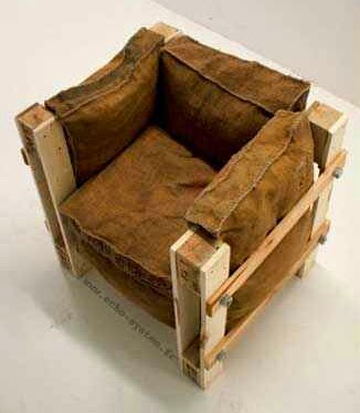 Algo que en principio es tan, tan,....no sé, tan cutre, tan ajado? se convierte en un material increíblemente versátil, yo diría hasta señorial, cuando se usa para tapizar unas butacas, por ejemplo, y más si utilizas la parte impresa con el logotipo.