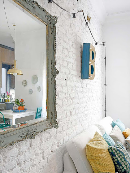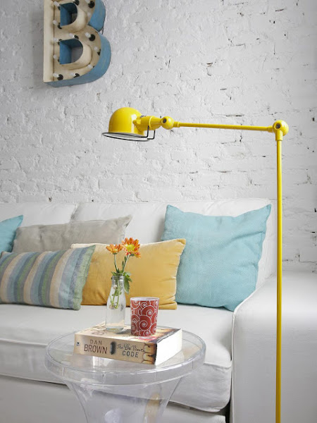 Hemos disfrutado como enanos de esa hermosa pared de ladrillo blanco que tan bien encaja con complementos de aire industrial... Ha despertado nuestro interés por los platos en la pared, que ¡nunca pasan de moda! y que siempre quedan tan bien, junto a cualquier mesa de cualquier comedor... Ha teñido nuestras ideas de amarillo y de amor por los tejidos recordándonos que no hay que tener miedo a ningún tono y mucho menos a combinaciones que a priori se antojen imposibles...