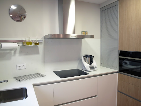 La encimera en Silestone Nebula Alpha Ariel combina a la perfección con el conjunto creando aún mayor luminosidad. El equipamiento de electrododomésticos es del firma Neff, Pando y Blanco.