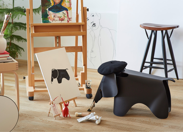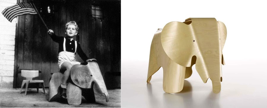 Charles y Ray Eames también sucumbieron al encanto de este animal y en 1945 diseñaron Elephant, un elefante de juguete en contrachapado de madera que en su momento, nunca llego a fabricarse en serie.