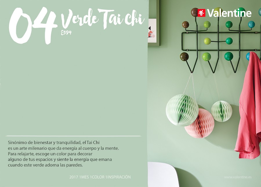 Dentro de la gran variedad de tonalidades existentes en la rueda cromática, nos encontramos con la gama de los verdes secos. El Verde es el protagonista del 2017; Greenery - ya hablamos de él aquí a primeros de año - y el verde taichi, se encuentra inspirado en los colores de las hojas de hiervas secas a la sombra, un color claro y agrisado.