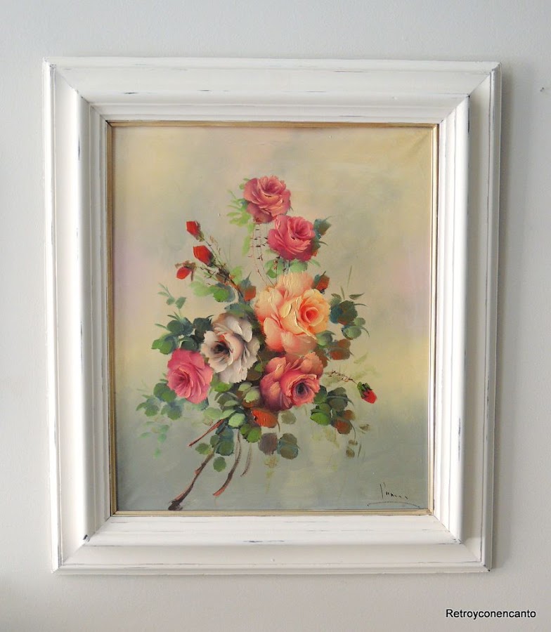 Esto de los gustos es muy personal, pero ahora pondríamos cualquiera de estos dos oleos florales en nuestras casas, con sus relucientes marcos blancos que han dado luz y vida a esos ramilletes.