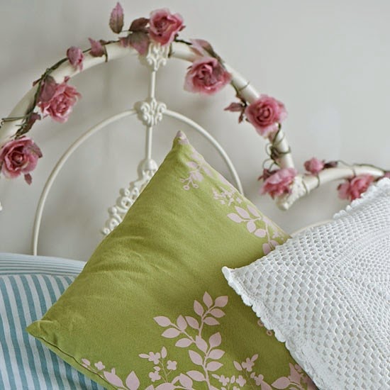 FotoY si queréis ver otro precioso arreglo floral, no dejéis de entrar en el Blog "Un pedacito de luna", en el que Menchu, encantadora autora del mismo, nos mostró esta bonita imagen de su cabecero