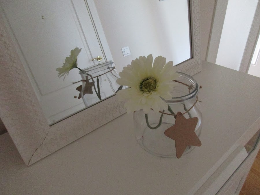 Hello! How about , how are you? As I said in another post Im furnishing my house little by little and today I wanted to show some ornaments that usually put in the furniture that I have in my home entrance.The ornaments are all quite simple but decorating them with flowers are very pretty. I do not like to put too much over the furniture so that when I arrive I can have a place to leave things.The furniture as I gave two of my friends Carlos y Elena. Thanks!! It has three large drawers where I can get a lot of things.I really like to be White because I can thus combine with lots of colors.