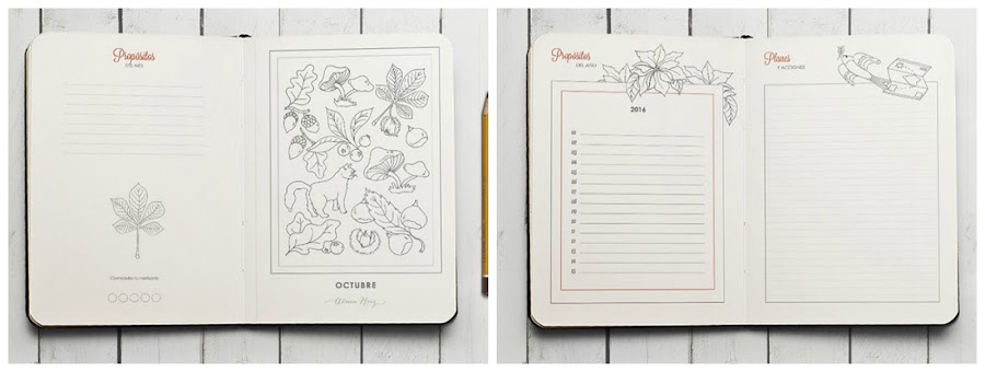 Para el 2015, Moli me regaló el de Mr. Wonderful y la mitad de las hojas están vacías. Eso si, a las pegatinas y notas de la parte posterior de la agenda siempre les busco algún uso: para hacer wishlist, anotar contraseñas...