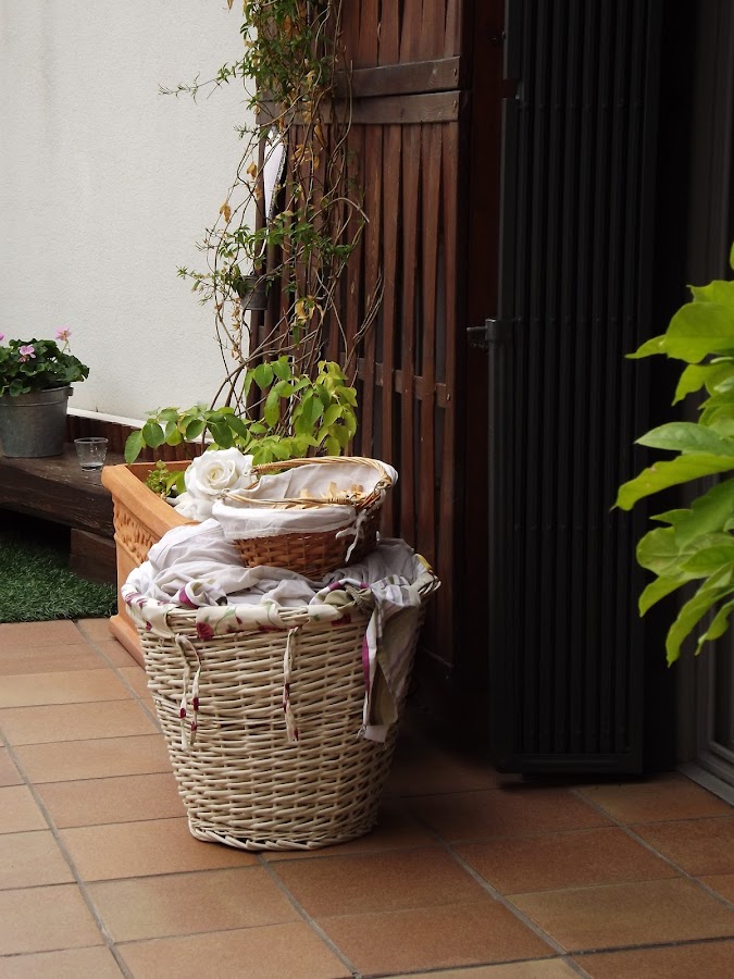 Por allí asoma mi cesto de la ropa recién lavada y dudo si tenderla al exterior...