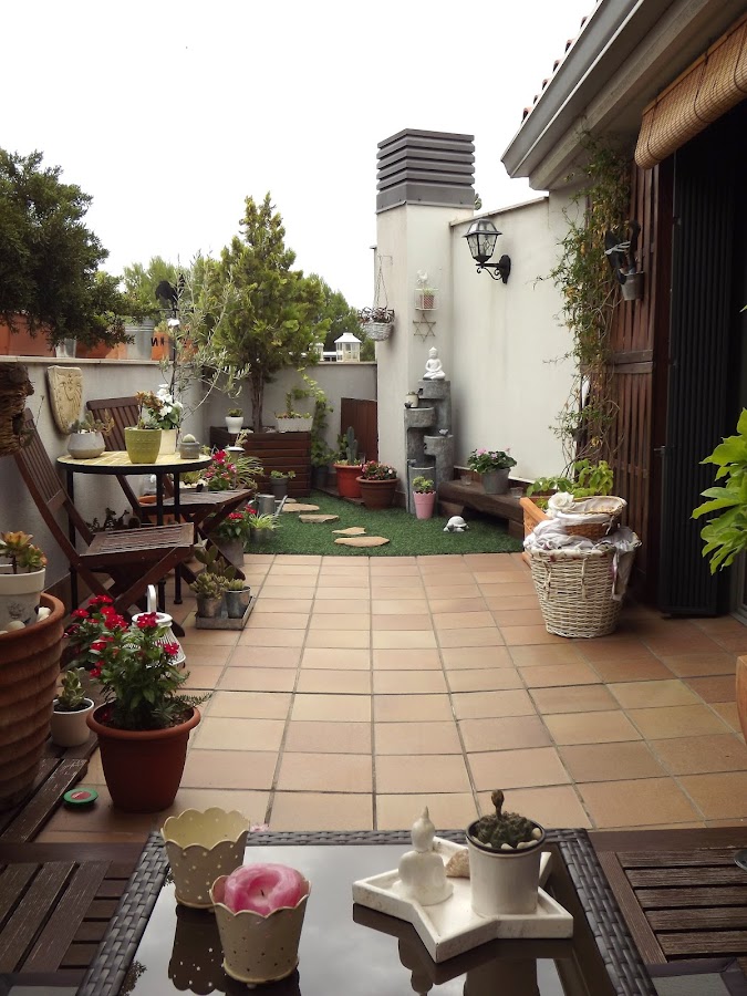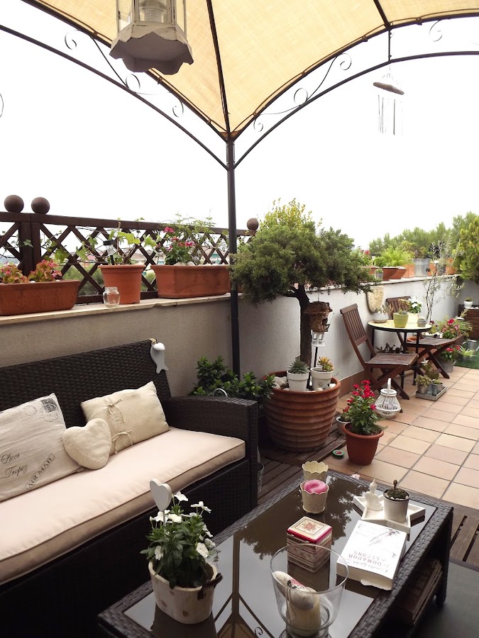 Siiiiiiiiiiiiiiiiiiiiiiiiiii, hoy si que si, cielos nublados que apaciguan el enorme calor de las últimas semanas. Anoche cayó sobre mi ciudad una tremenda tormenta, rayos y truenos se dibujaron sobre los cielos y por fin pudimos dormir con una ligera brisa que se colaba por las ventanas abiertas. No se lo que durará este agradable tiempo, pero hoy nos aprovechamos por aquí instalándonos en nuestra terraza desde primera hora de la mañana...