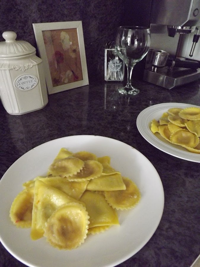 Adelantadas hojas de mi lectura y tendida mi colada me bajo a la cocina, hoy os asomo por aquí un plato sencillo y delicioso. ¿Qué tal pasta rellena para comer?...