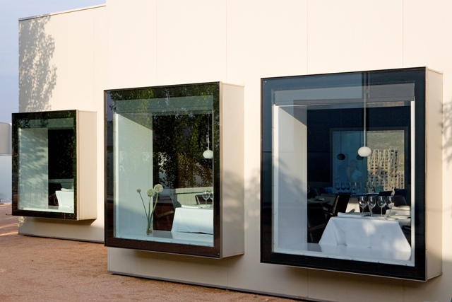 En medio de un imponente paisaje con una fuerte presencia del viento, el hotel Aire de Bardenas se concibe como una sucesión de espacios interiores de diseño, protegidos y confortables pensados para observar el exterior. El espacio se desarrolla entorno a un patio central y se compone de una serie de estructuras sencillas, monocromáticas y cúbicas desmontables y completamente reciclables. La arquitectura, los interiores y los jardines buscan acercarse al carácter rural y a la belleza del austero paisaje circundante, ofreciendo ambientes despejados, sencillos y silenciosos.