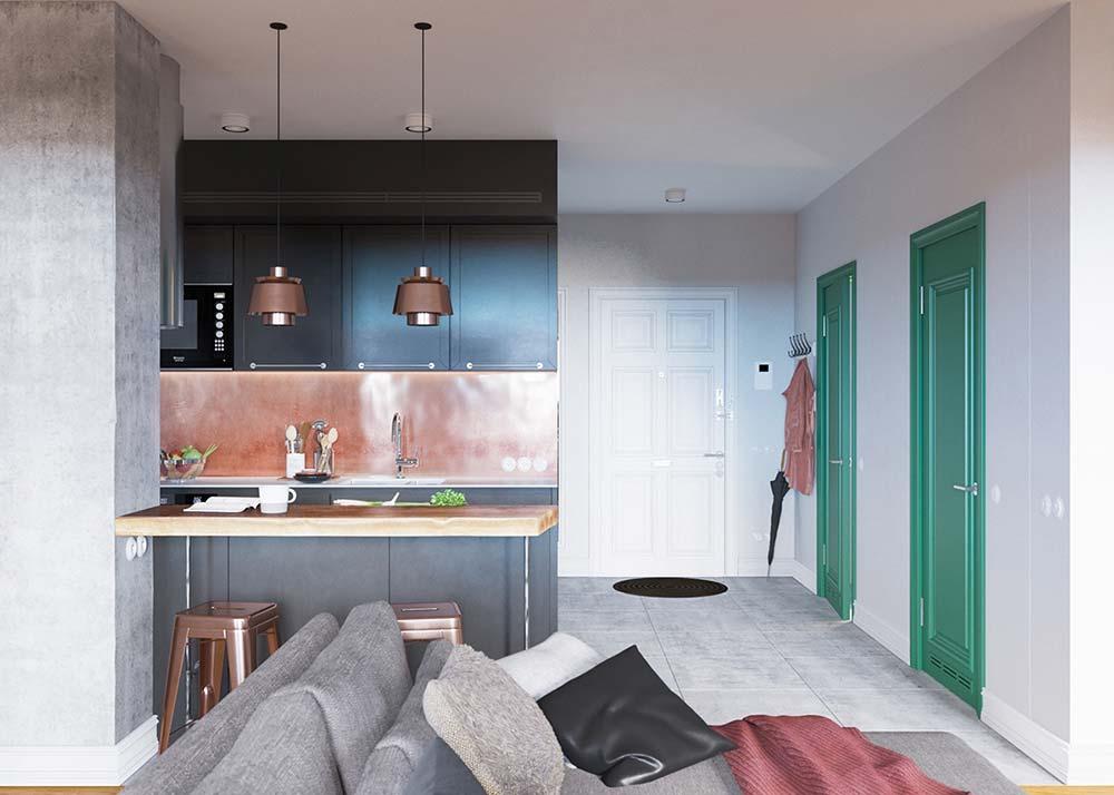 -Los colores elegidos que apoyan el espacio masculino. Y las puertas verdes, ideales y originales.