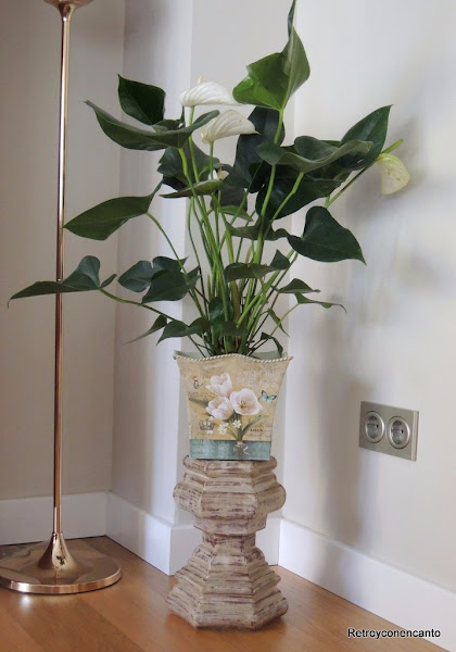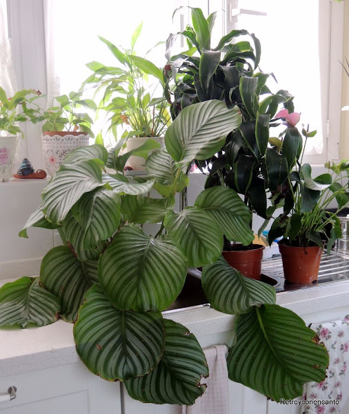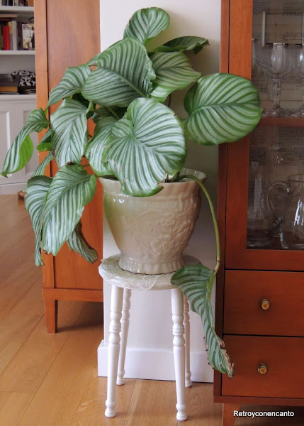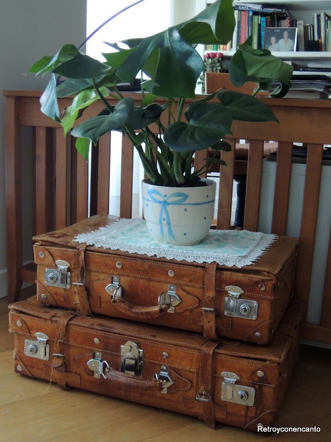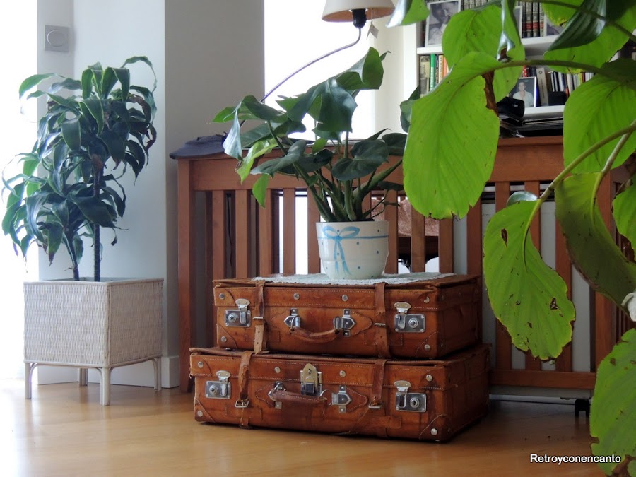Ahí las dejamos escurrir casi toda la mañana, hasta la hora de comer en que, con el lío de la comida, cada una vuelve a su sitio. Una de nosotras recuerda aún el sofocón que se llevó cuando, en su segunda recién estrenada casa, de eso hace ya como veinte años, se quedaron impresas sobre el parquet las manchas de las macetas que tenía adornando el piso. Novata ella, a pesar de que cada una llevaba su correspondiente platito, esto no fue suficiente... El agua sobrante y la humedad constante hicieron mella en la madera sin solución. ¡Pero una y no más, Santo Tomas! Con el tiempo nos hemos ido haciendo con todo tipo de soportes que las levantan del suelo, maceteros con patas, taburetes, maletas... No hay planta que entre en casa que no esté relativamente en alto.