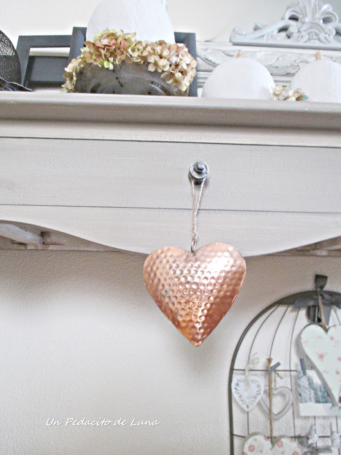 Recordé que tenía una guirnalda de lucecitas en tono cobre, así como dos corazones en latón en el mismo tono, que colgué de los tiradores de los cajones