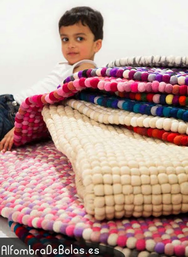 Originales, cálidas, agradables, mulliditas, personalizables, todos estos adjetivos y más describen las alfombras de bolas de fieltro.