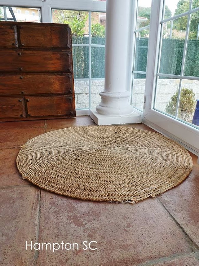 ¡Nos propone una alfombra redonda de fibras....para la entrada de casa!