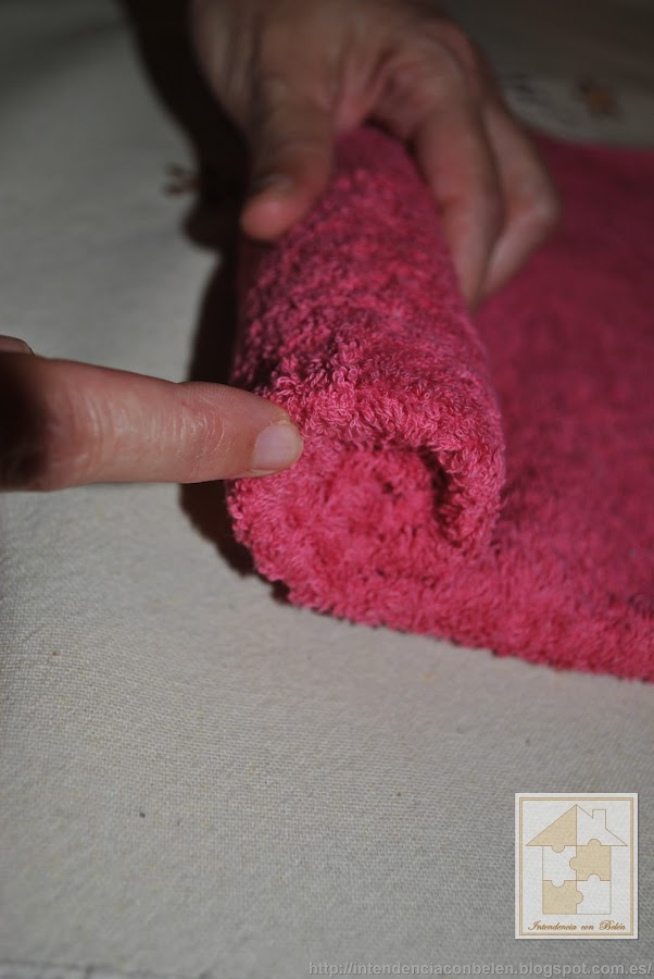 Coloca una toalla en una superficie plana. La toalla debe estar abierta en su tamaño completo. Pasa tus manos por la superficie para quitarlas posibles arrugas.
