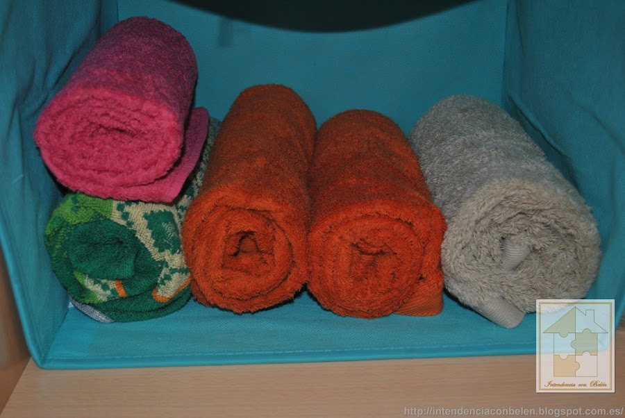 Os enseño como las tengo en la actualidad. He descubierto que de ésta forma se arrugan mucho menos y cuando alguien de casa coge una, es fácil de mantener el resto en su sitio.